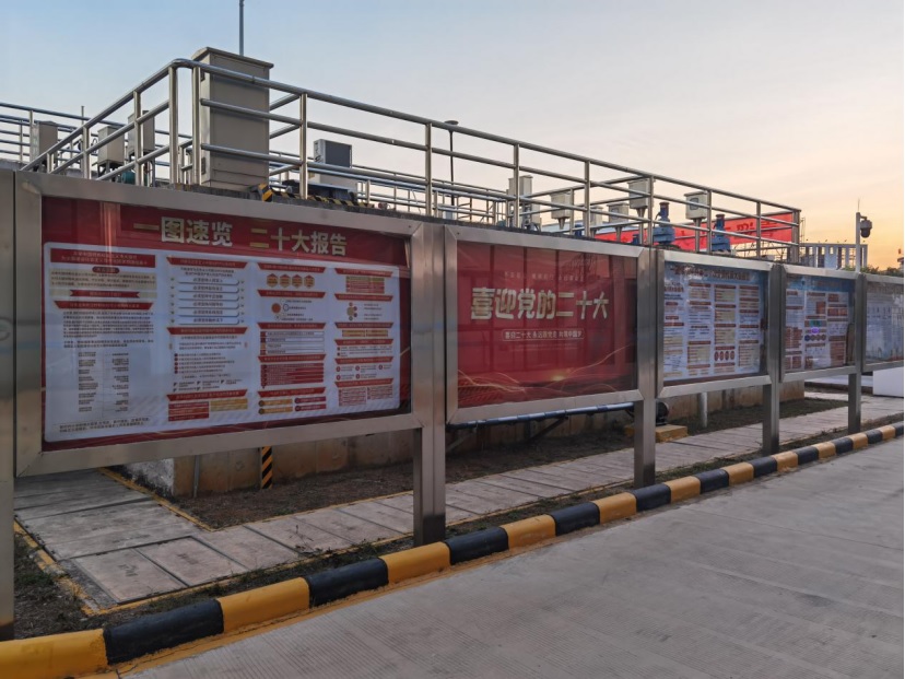 中環(huán)水務(wù)黨委堅(jiān)持學(xué)習(xí)宣傳一體推進(jìn)、相互促進(jìn)。中環(huán)水務(wù)官網(wǎng)、官微、小程序、企業(yè)內(nèi)刊四位一體、綜合發(fā)力。精心策劃二十大宣傳專題、專欄和???。下屬遂溪公司黨支部在城月總廠區(qū)張貼二十大精神系列海報(bào),其他11個(gè)廠區(qū)通過(guò)拉橫幅、張貼二十大精神要點(diǎn)等形式將黨的二十大精神宣傳到基層。溫州中環(huán)黨支部制作專題宣傳欄,并通過(guò)LED電子顯示屏、QQ群、微信群、生產(chǎn)會(huì)議等載體,大力宣傳二十大精神,做到二十大金句人盡皆知,營(yíng)造了濃厚的宣傳氛圍。蚌埠中環(huán)黨委利用機(jī)關(guān)大院3塊LED屏循環(huán)滾動(dòng)宣傳二十大精神,并在大樓門廳處制作、展示黨的二十大報(bào)告解讀宣傳板報(bào)。 思:武裝頭腦勤思考 增強(qiáng)信心鼓干勁。 中環(huán)水務(wù)各基層黨組織迅速召開(kāi)專題研討會(huì)和座談會(huì),黨組織書(shū)記和黨員干部帶頭解讀大會(huì)報(bào)告、分享學(xué)習(xí)體會(huì)。黨員同志們踴躍發(fā)言,相互交流,更加堅(jiān)定了做新時(shí)代黨的好干部的信念。