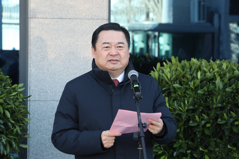 升旗儀式開(kāi)始,隨著莊嚴(yán)雄壯的《義勇軍進(jìn)行曲》響起,擎旗手揮臂揚(yáng)旗,鮮艷的五星紅旗冉冉升起,迎著朝陽(yáng)高高飄揚(yáng)。全場(chǎng)人員面向國(guó)旗肅立,行注目禮,滿(mǎn)懷深情高唱國(guó)歌,共同祝愿?jìng)ゴ蟮淖鎳?guó)繁榮昌盛。 郝鵬指出,剛剛過(guò)去的2020年,極為不易、極不平凡。面對(duì)世紀(jì)罕見(jiàn)的嚴(yán)重沖擊,以習(xí)近平同志為核心的黨中央團(tuán)結(jié)帶領(lǐng)全黨全國(guó)各族人民披荊斬棘、攻堅(jiān)克難,在極不尋常的年份創(chuàng)造了極不尋常的輝煌。國(guó)資央企在大戰(zhàn)大考中挺身而出、勇挑重?fù)?dān),盡銳出戰(zhàn)抗擊疫情,“兩個(gè)力爭(zhēng)”如期實(shí)現(xiàn),推動(dòng)國(guó)企改革三年行動(dòng)落實(shí)落地,促進(jìn)科技攻堅(jiān)取得新成果,防范化解重大風(fēng)險(xiǎn)有力有效,黨的領(lǐng)導(dǎo)黨的建設(shè)切實(shí)加強(qiáng),大國(guó)頂梁柱作用充分彰顯,向黨和人民交出了一份合格答卷。 郝鵬強(qiáng)調(diào),2021年是中國(guó)共產(chǎn)黨百年華誕,是乘勢(shì)而上開(kāi)啟全面建設(shè)社會(huì)主義現(xiàn)代化國(guó)家新征程、向第二個(gè)百年奮斗目標(biāo)進(jìn)軍的開(kāi)局之年。要繼續(xù)奮斗,勇往直前,把牢政治方向、做到“兩個(gè)維護(hù)”,不斷提高政治判斷力、政治領(lǐng)悟力、政治執(zhí)行力,堅(jiān)決貫徹落實(shí)習(xí)近平總書(shū)記重要指示精神和黨中央、國(guó)務(wù)院決策部署;胸懷“兩個(gè)大局”、心系“國(guó)之大者”,指導(dǎo)推動(dòng)中央企業(yè)當(dāng)好構(gòu)建新發(fā)展格局的主力軍,成為促進(jìn)科技自立自強(qiáng)的國(guó)家隊(duì),充分發(fā)揮國(guó)有經(jīng)濟(jì)戰(zhàn)略支撐作用;堅(jiān)持改革開(kāi)放、推動(dòng)高質(zhì)量發(fā)展,大力推動(dòng)國(guó)企改革三年行動(dòng),加快國(guó)有經(jīng)濟(jì)布局結(jié)構(gòu)調(diào)整,進(jìn)一步做強(qiáng)做優(yōu)做大國(guó)有資本和國(guó)有企業(yè);持續(xù)加強(qiáng)國(guó)資監(jiān)管、促進(jìn)國(guó)有資產(chǎn)保值增值,進(jìn)一步提高專(zhuān)業(yè)化監(jiān)管能力,優(yōu)化監(jiān)管方式,不斷提升監(jiān)管效能;堅(jiān)持黨的全面領(lǐng)導(dǎo)、切實(shí)加強(qiáng)黨的建設(shè),進(jìn)一步強(qiáng)化黨的意識(shí)和組織觀念,努力跑出歷史接力賽的更好成績(jī)。