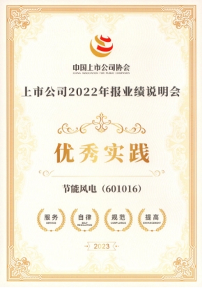 11月29日,中國上市公司協(xié)會舉辦“2023中國上市公司發(fā)展論壇”并發(fā)布了“2022年報業(yè)績說明會最佳及優(yōu)秀實踐”。風電公司榮獲“上市公司2022年報業(yè)績說明會優(yōu)秀實踐”。