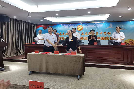 為履行央企社會責(zé)任,服務(wù)地方教育事業(yè),助推志愿服務(wù)事業(yè)發(fā)展,2021年6月26日,中國環(huán)保衡水公司在衡水市直工委組織的志愿服務(wù)項目簽約儀式上與衡水市第三中學(xué)、第四中學(xué)、永安路小學(xué)、新苑小學(xué)、勝利小學(xué)五家學(xué)校簽訂了志愿服務(wù)協(xié)議書。衡水市委宣傳部、市直工委、民政局、教育局、城市管理綜合執(zhí)法局的主要領(lǐng)導(dǎo)共同參加了此次簽約儀式。