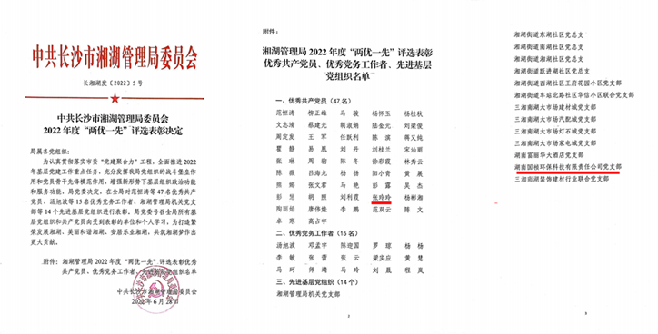 6月30日上午,中節(jié)能國禎湖南國禎環(huán)保科技有限責(zé)任公司黨支部榮獲中共長沙市湘湖管理局委員會授予的“先進(jìn)基層黨組織”,支部黨務(wù)工作專干張玲玲同志被評為“優(yōu)秀共產(chǎn)黨員”。湖南區(qū)域公司總經(jīng)理崔黎明受邀為“先進(jìn)基層黨組織”代表頒獎。 中節(jié)能國禎湖南區(qū)域黨支部自2018年成立以來,按照上級黨委“五化”建設(shè)的要求,增強(qiáng)“四個(gè)意識”、堅(jiān)定“四個(gè)自信”、做到“兩個(gè)維護(hù)”。積極提升支部黨建工作水平,積極開展黨員思想政治學(xué)習(xí),積極做好“不忘初心、牢記使命”主題教育,支部工作主要從強(qiáng)黨建,凝隊(duì)伍;樹形象,固堡壘;學(xué)思想,樹理念;爭先鋒、做服務(wù)等幾個(gè)方面落實(shí),推進(jìn)黨建工作與生產(chǎn)經(jīng)營同頻共振、互融共進(jìn),充分發(fā)揮黨組織的政治核心作用、戰(zhàn)斗保壘作用和黨員的先鋒模范作用。 榮譽(yù)的取得,既是鼓勵,也是鞭策。中節(jié)能國禎湖南區(qū)域黨支部將不斷強(qiáng)化黨建引領(lǐng),形成黨建聚合力,帶領(lǐng)黨員群眾續(xù)繼開拓創(chuàng)新、努力工作,發(fā)揮黨建實(shí)質(zhì)作用,不斷增強(qiáng)黨支部在企業(yè)中的滲透力,影響力和覆蓋面。全體黨員定會牢記初心使命、勇于擔(dān)當(dāng)作為、堅(jiān)定理想信念、努力拼搏進(jìn)取,為推動公司高質(zhì)量發(fā)展的進(jìn)程中凝聚昂揚(yáng)向上力量,以實(shí)際行動迎接黨的二十大勝利召開。