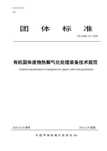 由中國(guó)環(huán)保機(jī)械行業(yè)協(xié)會(huì)歸口,中節(jié)能環(huán)保裝備股份有限公司(以下簡(jiǎn)稱(chēng)“中環(huán)裝備公司”)牽頭編制的團(tuán)體標(biāo)準(zhǔn)《有機(jī)固廢熱解氣化處理裝備技術(shù)要求》(以下簡(jiǎn)稱(chēng)《標(biāo)準(zhǔn)》)經(jīng)過(guò)立項(xiàng)答辯、標(biāo)準(zhǔn)起草、意見(jiàn)征求、專(zhuān)家審查等環(huán)節(jié),于2020年12月29日批準(zhǔn)發(fā)布,這也是我國(guó)首個(gè)有機(jī)固廢熱解氣化處理裝備團(tuán)體標(biāo)準(zhǔn)。