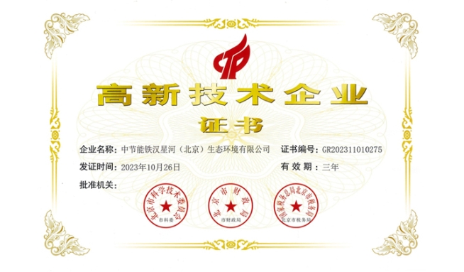 近日,中節(jié)能鐵漢所屬鐵漢星河收到北京市科學(xué)技術(shù)委員會、北京市財(cái)政局、國家稅務(wù)總局北京市稅務(wù)局聯(lián)合頒發(fā)的《高新技術(shù)企業(yè)證書》,這是鐵漢星河自2014年以來,第四次獲得該證書。