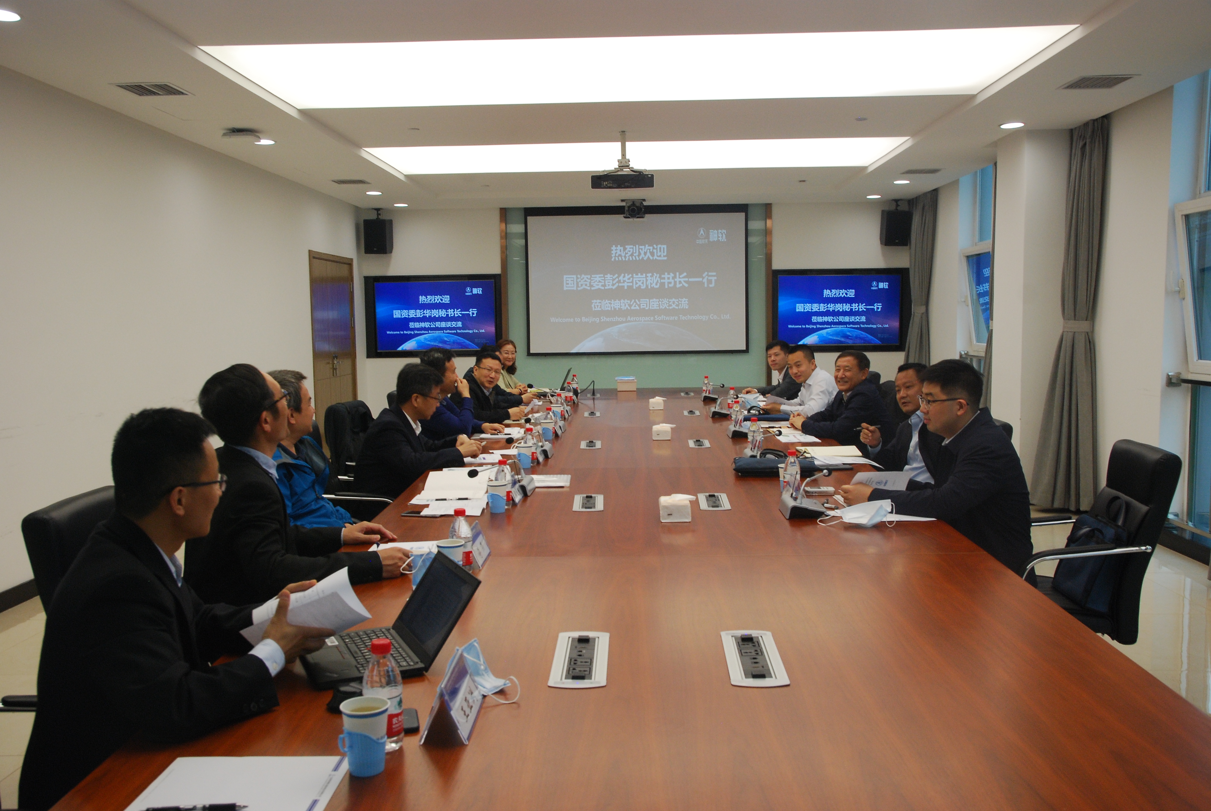 2020年5月8日,國資委黨委委員、秘書長彭華崗赴航天科技所屬的“雙百企業(yè)”北京神舟航天軟件技術(shù)有限公司調(diào)研,參觀企業(yè)創(chuàng)新驗證中心,聽取企業(yè)推行職業(yè)經(jīng)理人制度等綜合性改革有關(guān)情況的匯報,并與航天科技、神軟公司有關(guān)負責(zé)同志進行了座談交流。