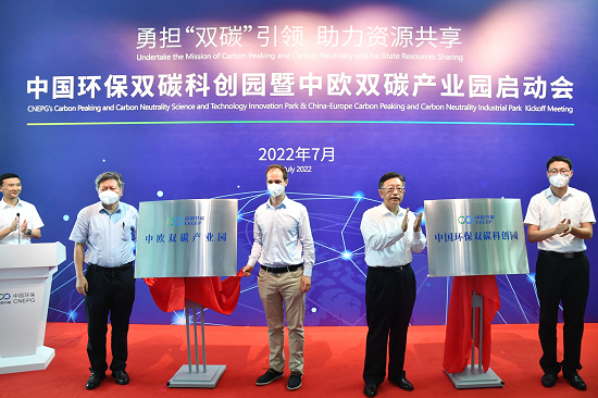 7月5日上午,中國(guó)節(jié)能所屬中國(guó)環(huán)境保護(hù)集團(tuán)有限公司“中國(guó)環(huán)保雙碳科創(chuàng)園暨中歐雙碳產(chǎn)業(yè)園”啟動(dòng)會(huì)在北京順義舉行。集團(tuán)公司黨委書(shū)記、董事長(zhǎng)宋鑫出席會(huì)議,并與北京市順義區(qū)政府、國(guó)家應(yīng)對(duì)氣候變化戰(zhàn)略研究和國(guó)際合作中心、中國(guó)瑞士商會(huì)等機(jī)構(gòu)組織代表共同為園區(qū)揭牌。