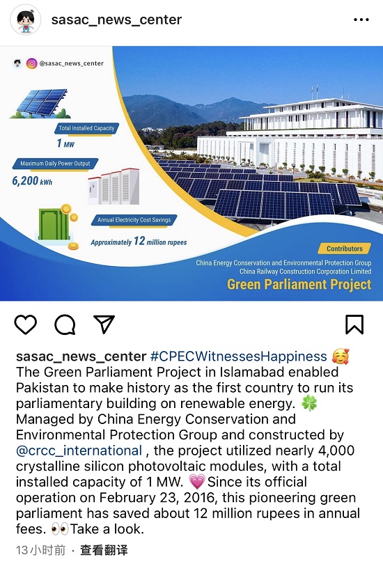 國資小新:Instagram報道中國節(jié)能援巴基斯坦項目情況