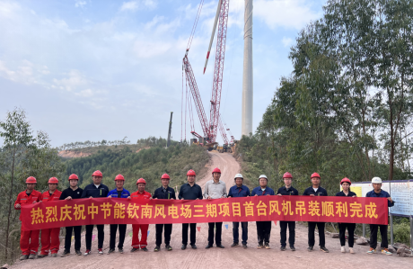 11月22日,風(fēng)電廣西公司中節(jié)能欽南三期項(xiàng)目首臺6.7兆瓦風(fēng)機(jī)順利完成吊裝,該臺風(fēng)機(jī)是目前風(fēng)電公司系統(tǒng)內(nèi)單機(jī)容量最大、塔筒高度最高、葉片最長、起重量最大的風(fēng)機(jī)。
