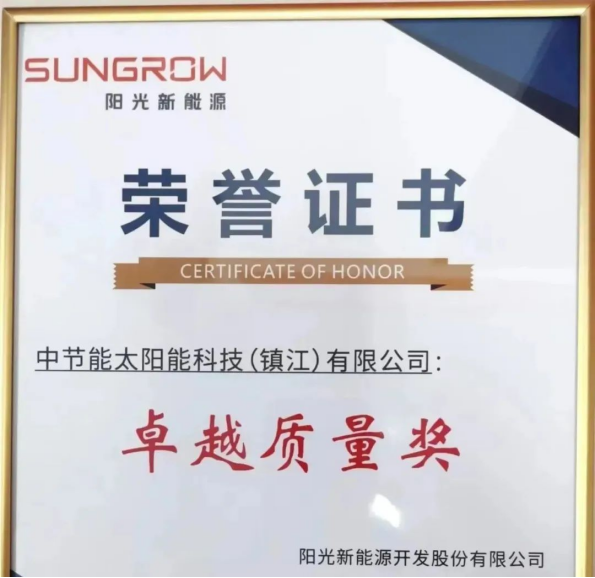 【能力提升年】中節(jié)能太陽能鎮(zhèn)江公司榮獲陽光新能源“卓越質(zhì)量獎” |