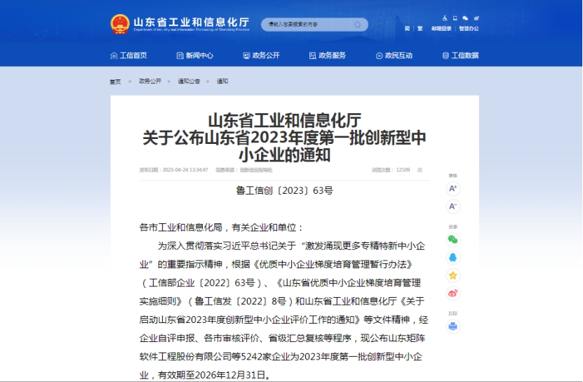 近日,山東省工業(yè)和信息化廳公布山東省2023年度第一批創(chuàng)新型中小企業(yè)名單,太陽能公司下屬中節(jié)能(新泰)太陽能科技有限公司成功入選該名單。