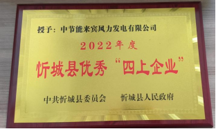 近日,風(fēng)電來賓公司榮獲2022年度忻城縣優(yōu)秀“四上企業(yè)”榮譽(yù)稱號(hào)。