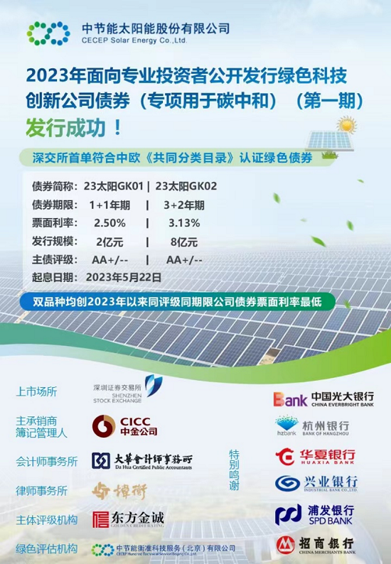 中節(jié)能太陽能在深交所發(fā)行首單符合《共同分類目錄》認(rèn)證的綠色公司債券 |
