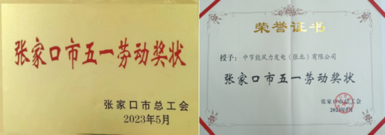 中節(jié)能風力發(fā)電(張北)有限公司榮獲“張家口市五一勞動獎狀” |