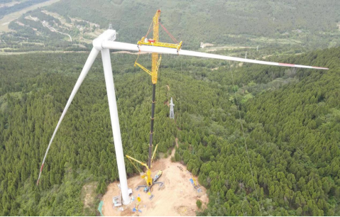 風(fēng)電劍閣三期項目首臺使用單葉片吊裝技術(shù)風(fēng)機(jī)順利完成吊裝 |