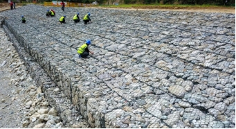 在鄠邑區(qū)澇河流域上游生態(tài)環(huán)境綜合整治項(xiàng)目紙坊村段施工現(xiàn)場(chǎng),工人們正在通過(guò)“格賓石籠”修砌河道堤壩。據(jù)現(xiàn)場(chǎng)施工負(fù)責(zé)人介紹,這種工藝除了有防洪作用,還可以有效過(guò)濾徑流雨水中的泥沙,確保河水水質(zhì)清澈穩(wěn)定。