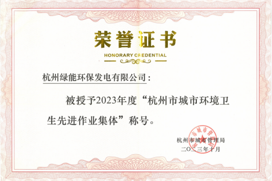 中國環(huán)保杭州公司榮獲“2023年杭州市 城市環(huán)境衛(wèi)生先進作業(yè)集體”稱號 |