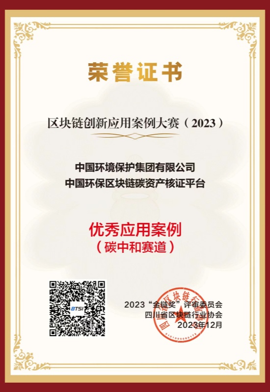 “中國環(huán)保區(qū)塊鏈碳資產(chǎn)核證平臺”獲評“2023金鏈獎”優(yōu)秀應(yīng)用案例 |