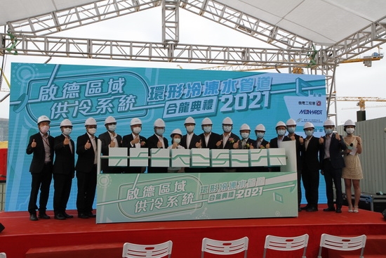 香港特區(qū)政府機(jī)電工程署于2021年4月19日在2849EM17A項(xiàng)目部舉行“啟德區(qū)域供冷系統(tǒng)環(huán)形冷凍水管道合龍典禮”,慶祝機(jī)電工程署在啟德新區(qū)冷凍水管道工程完工合龍。