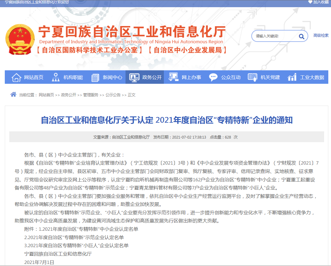 中節(jié)能寧夏太陽(yáng)能發(fā)電有限公司榮獲2021年度寧夏回族自治區(qū)“專精特新”中小企業(yè) |