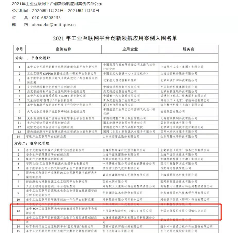 太陽能鎮(zhèn)江公司上榜工信部工業(yè)互聯(lián)網(wǎng)平臺 創(chuàng)新領航應用案例 |