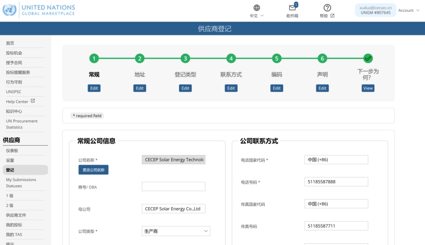 聯(lián)合國采購供應(yīng)商面對(duì)全球開放,分三個(gè)等級(jí),由低到高依次為基礎(chǔ)、一級(jí)和二級(jí)。截至2021年8月31日,一級(jí)和二級(jí)供應(yīng)商一共有15976個(gè),其中中國大陸(不包含香港臺(tái)灣澳門)供應(yīng)商企業(yè)數(shù)量為156個(gè)。 太陽能鎮(zhèn)江公司積極響應(yīng)國家“一帶一路”倡議,服務(wù)國家經(jīng)濟(jì)“雙循環(huán)”,強(qiáng)化紅色黨建引領(lǐng)綠色發(fā)展,深入貫徹落實(shí)集團(tuán)公司“市場(chǎng)拓展年”的具體要求,持續(xù)改革創(chuàng)新,加大科技研發(fā)和市場(chǎng)拓展力度,提高服務(wù)水平,助力企業(yè)競(jìng)爭(zhēng)力提升。 后續(xù),太陽能鎮(zhèn)江公司將抓住機(jī)遇,利用聯(lián)合國采購平臺(tái),為開拓國際市場(chǎng)打開新的渠道,助推公司高質(zhì)量發(fā)展。