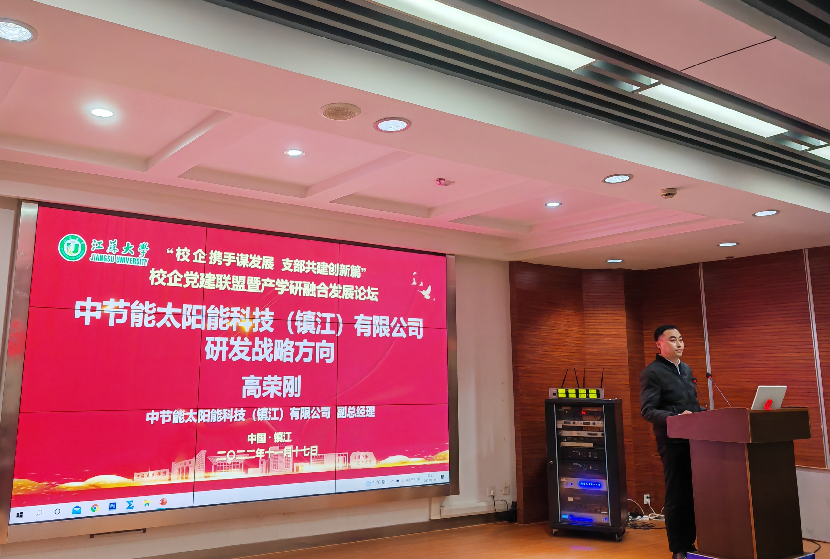 11月17日,鎮(zhèn)江公司參加校企黨建聯(lián)盟及產(chǎn)學(xué)研融合發(fā)展論壇,并重點(diǎn)介紹了鎮(zhèn)江公司高效單晶PERC電池片、輕柔組件-飛燕、全黑組件-青天、常規(guī)高效組件-云長(zhǎng)、PVB彩色雙玻高效組件-女?huà)z、節(jié)能光伏云平臺(tái)生態(tài)圈、電站效能提升綜合解決方案、太陽(yáng)能直流離網(wǎng)系統(tǒng)等產(chǎn)品,并就研發(fā)戰(zhàn)略方向做了研討。