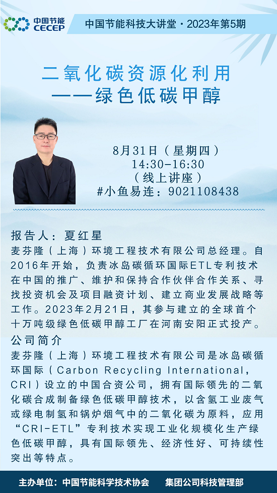 為加強綠色低碳技術(shù)交流,促進戰(zhàn)略性新興領(lǐng)域和行業(yè)前沿領(lǐng)域產(chǎn)業(yè)技術(shù)合作,集團公司科技管理部、中國節(jié)能科協(xié)特邀請麥芬?。ㄉ虾#┉h(huán)境工程技術(shù)有限公司(以下簡稱麥芬隆公司)總經(jīng)理夏紅星先生于2023年8月31日作科技大講堂專題講座。現(xiàn)將有關(guān)事項通知如下: