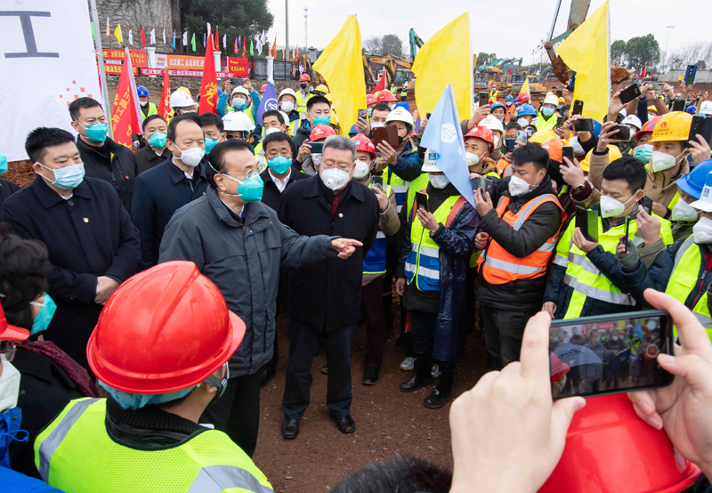 李克強專門來到正在加緊建設、集中收治疫情患者的火神山醫(yī)院工地,勉勵工人們加班加點,加快建設進度。他說,抗擊疫情如救水火,你們是在與時間賽跑,醫(yī)院建成將成為能夠及時收治患者的“安全島”。我們要千方百計確保所有患者應收盡收。李克強叮囑要做好工人們的疫情防護。